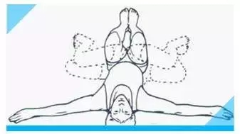 坐位膝關(guān)節(jié)分開,身體前彎,保持對下腰部舒適的牽伸。